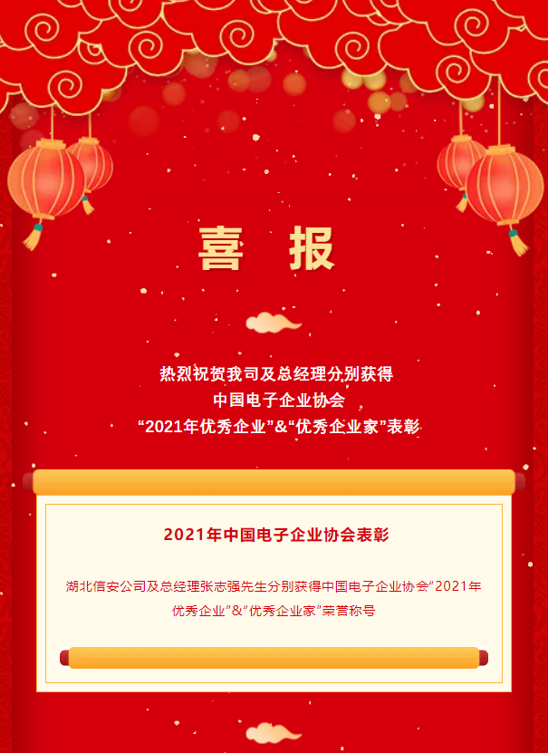 熱烈祝賀我司及總經理分別獲得中國電子企業協會2021年優秀企業及優秀企業家表彰